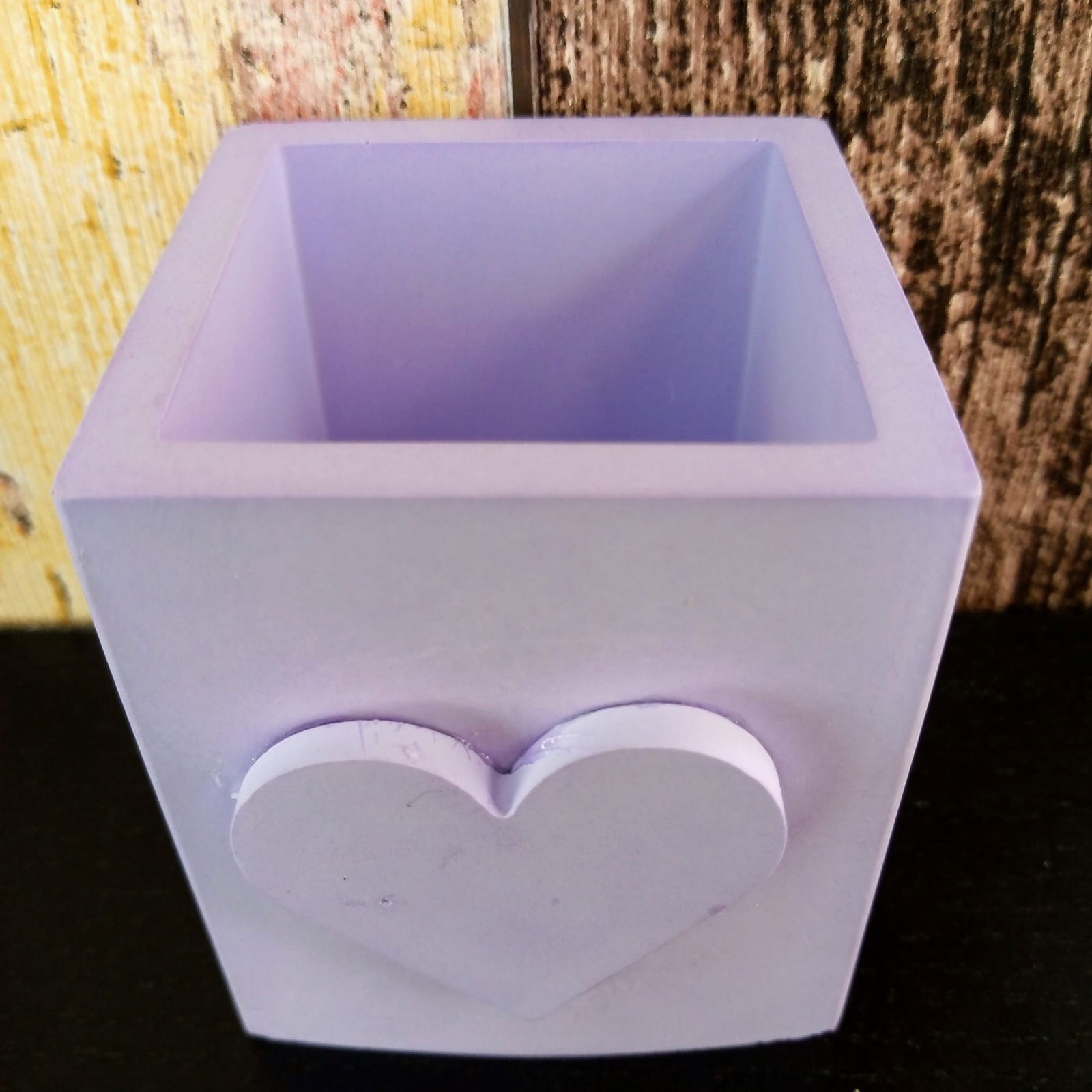 Recipient patrat din ceramica decorat cu inima, mov - produs manual in atelierul nostru, cu multiple destinatii: suport lumanare, suport creioane, depozitare mici obiecte, decor, vas pentru flori, ghiveci plante mici (ex: plante suculente).