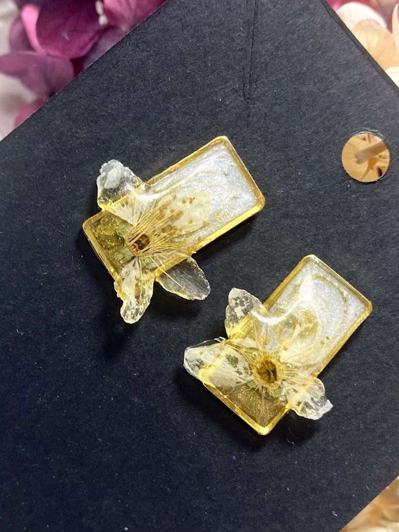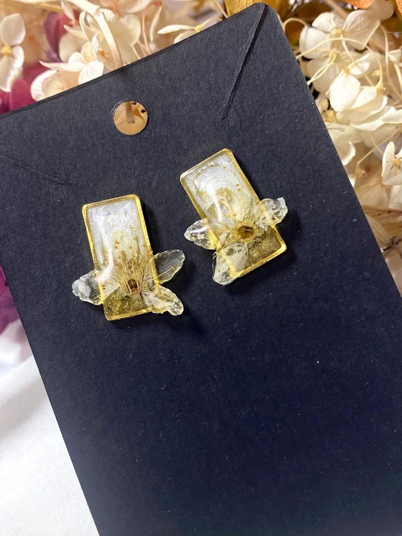 Rășina, un material ușor și versatil, este utilizată pentru a crea forme și texturi diverse, de la designuri simple și elegante, până la modele sofisticate, cu detalii fine. Datorită transparenței și proprietății sale de a fi ușor colorată, cerceii din rășină pot fi personalizați în nuanțe vibrante sau nuanțe pastelate, aducând un strop de culoare oricărei ținute. Uneori, rășina este combinată cu elemente precum flori presate, foi de aur, cristale mici sau pigmenti speciali ce filtreaza subtil lumina, adăugând un plus de rafinament și strălucire.