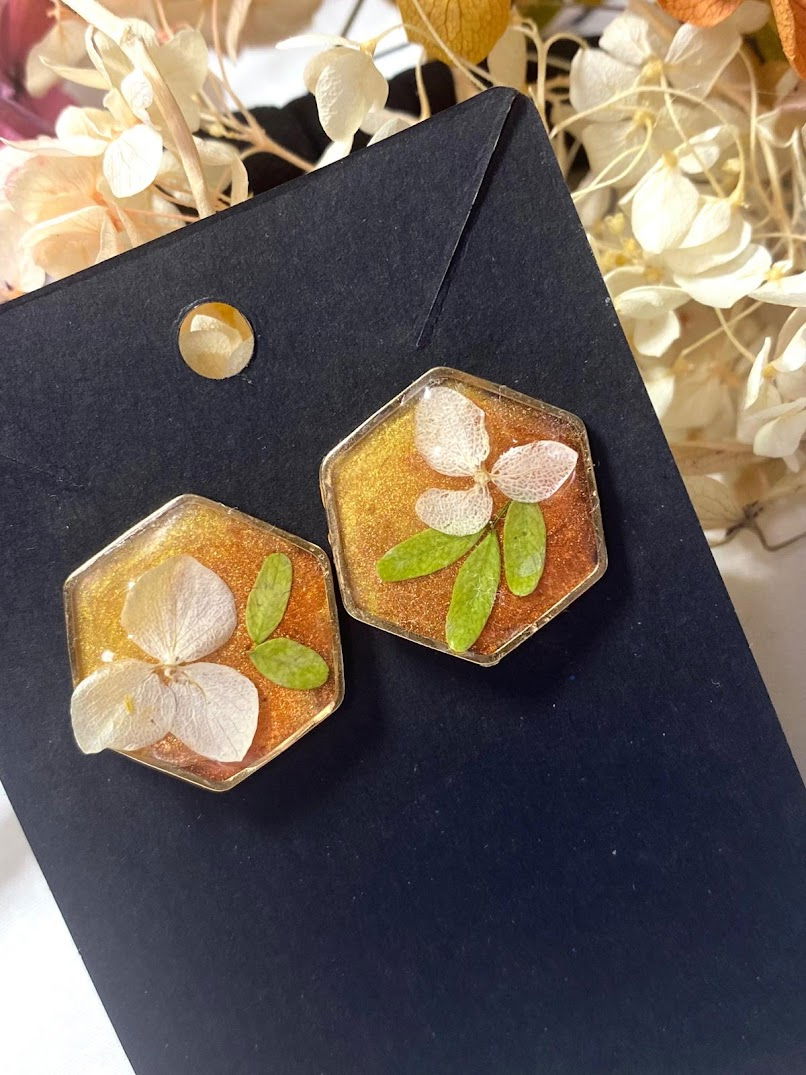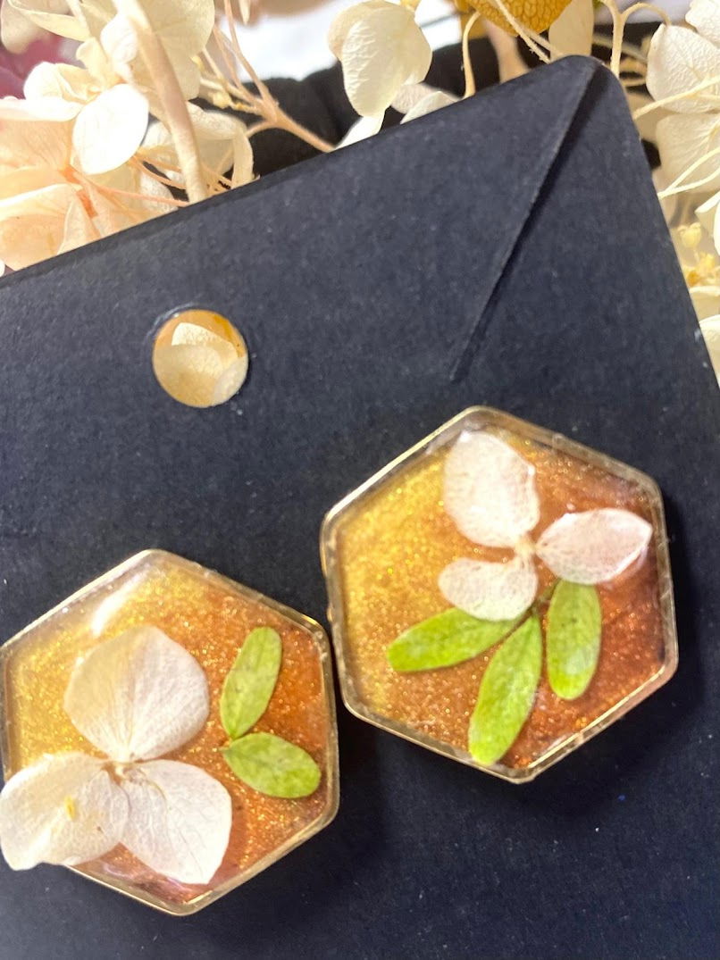 Rășina, un material ușor și versatil, este utilizată pentru a crea forme și texturi diverse, de la designuri simple și elegante, până la modele sofisticate, cu detalii fine. Datorită transparenței și proprietății sale de a fi ușor colorată, cerceii din rășină pot fi personalizați în nuanțe vibrante sau nuanțe pastelate, aducând un strop de culoare oricărei ținute. Uneori, rășina este combinată cu elemente precum flori presate, foi de aur, cristale mici sau pigmenti speciali ce filtreaza subtil lumina, adăugând un plus de rafinament și strălucire.