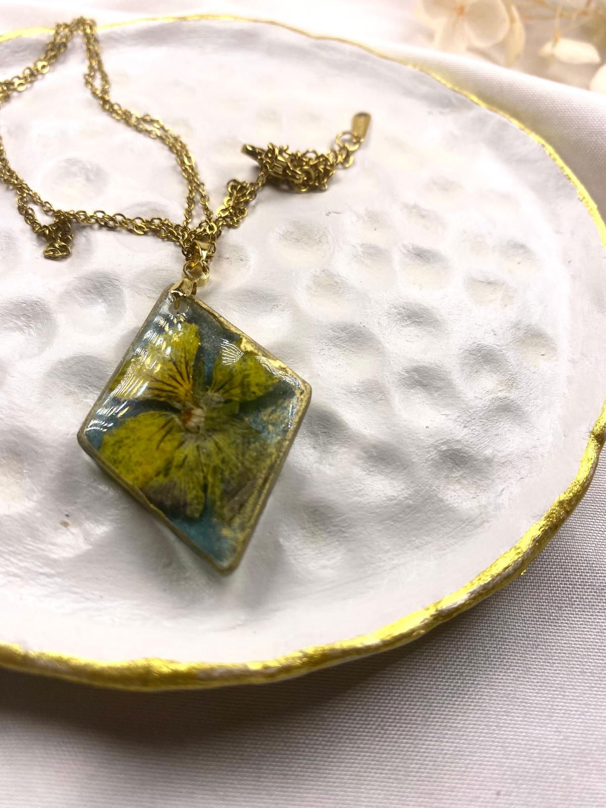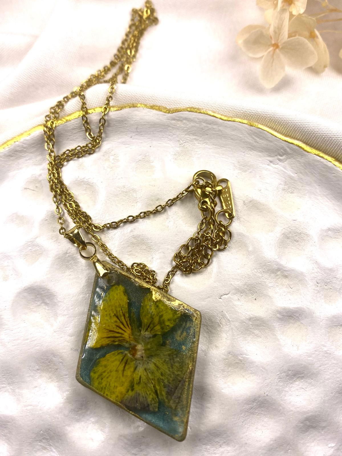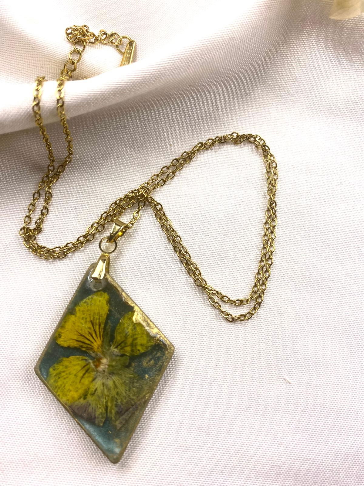 Lanțisor auriu cu panseluta galbena montata in rasina.