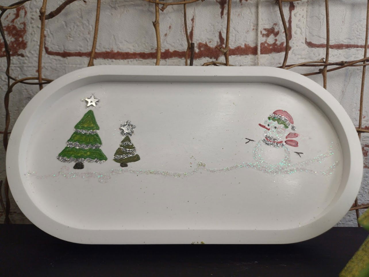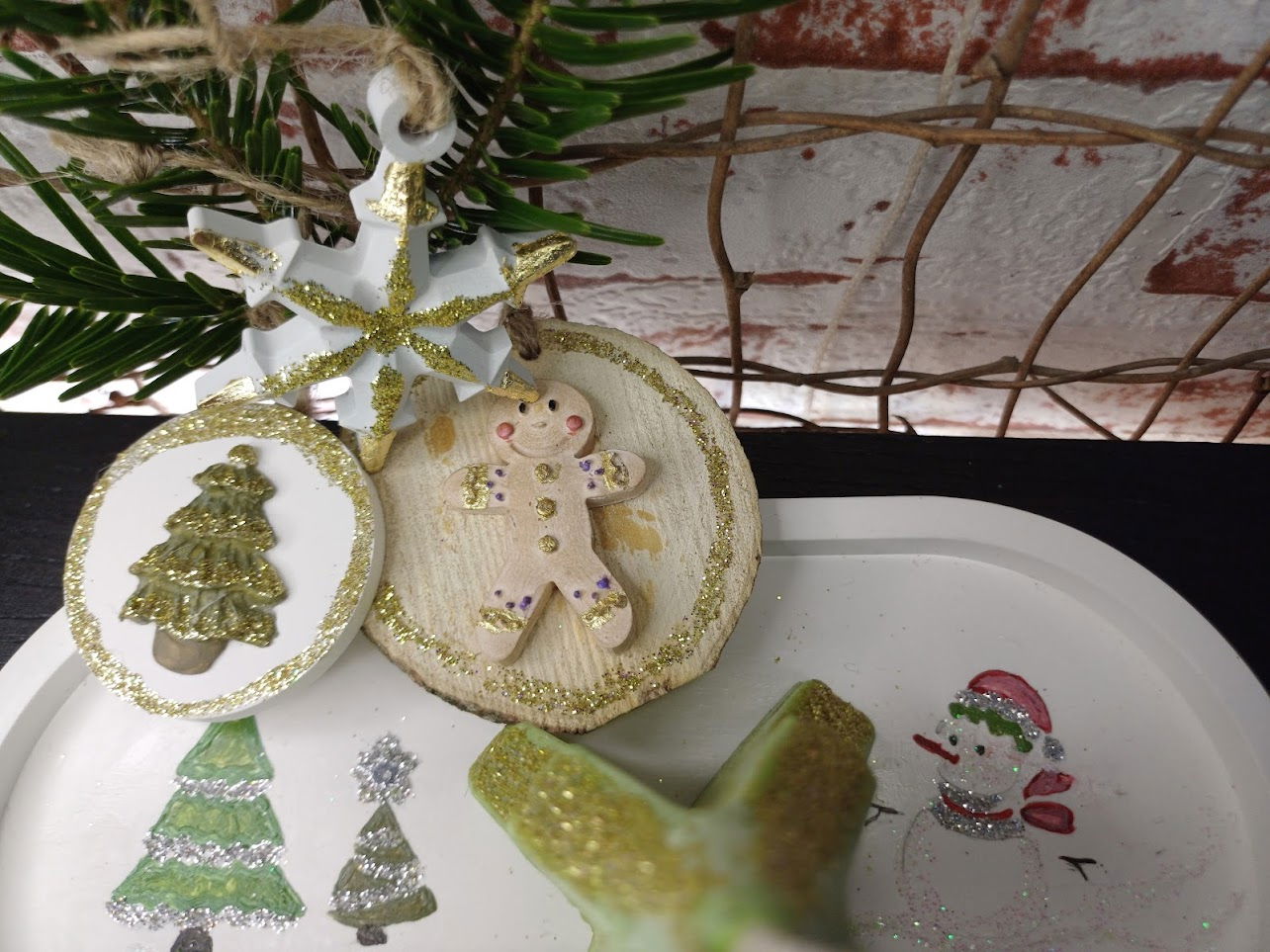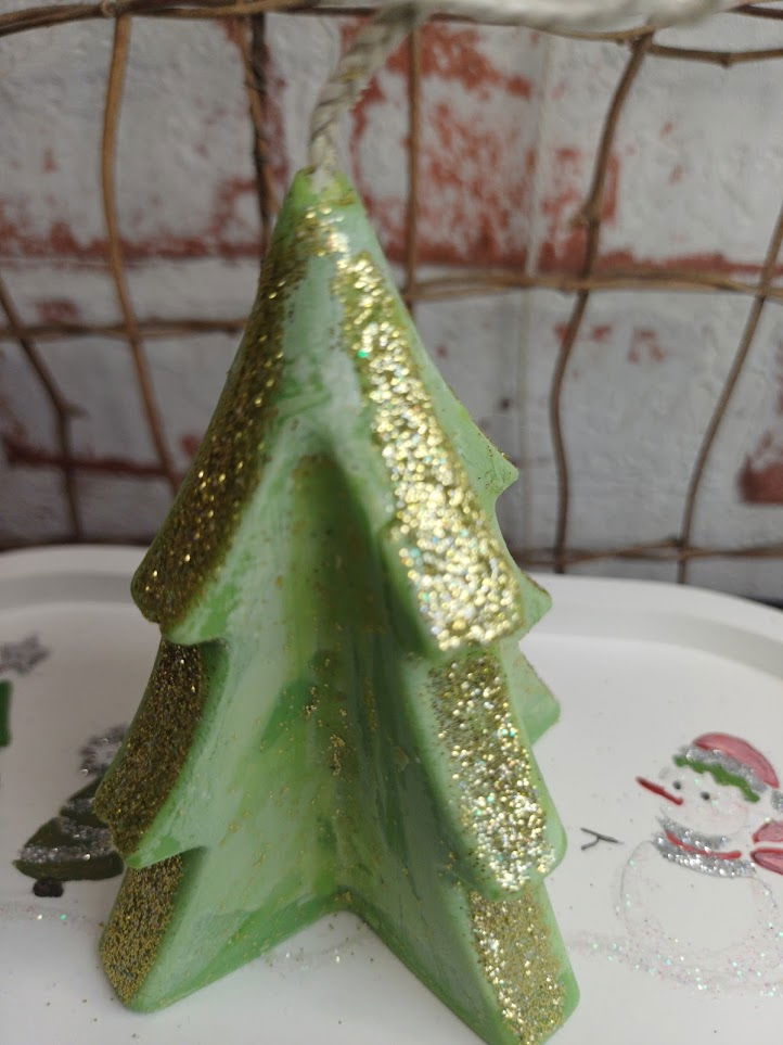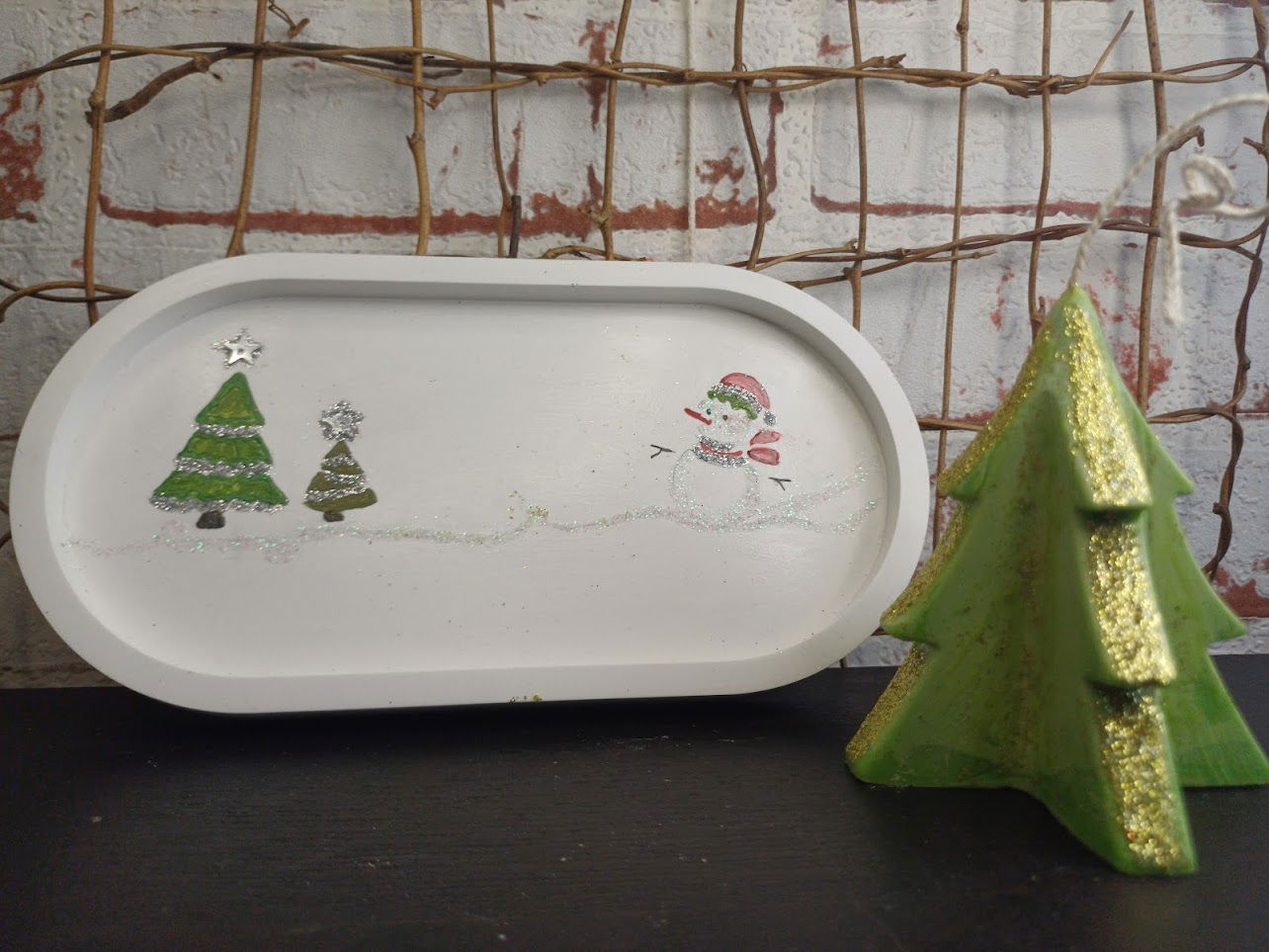 Set decorativ de Craciun: lumanare bradut plus suport oval pictat manual