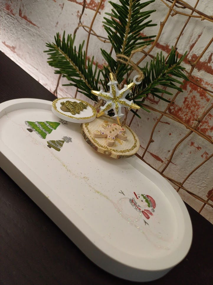 Suportul din ceramica oval, pictat manual aduce o notă de bucurie și căldură în decor. Suportul este nu doar funcțional, ci și un element decorativ, ce completează cu eleganță atmosfera de sărbătoare.