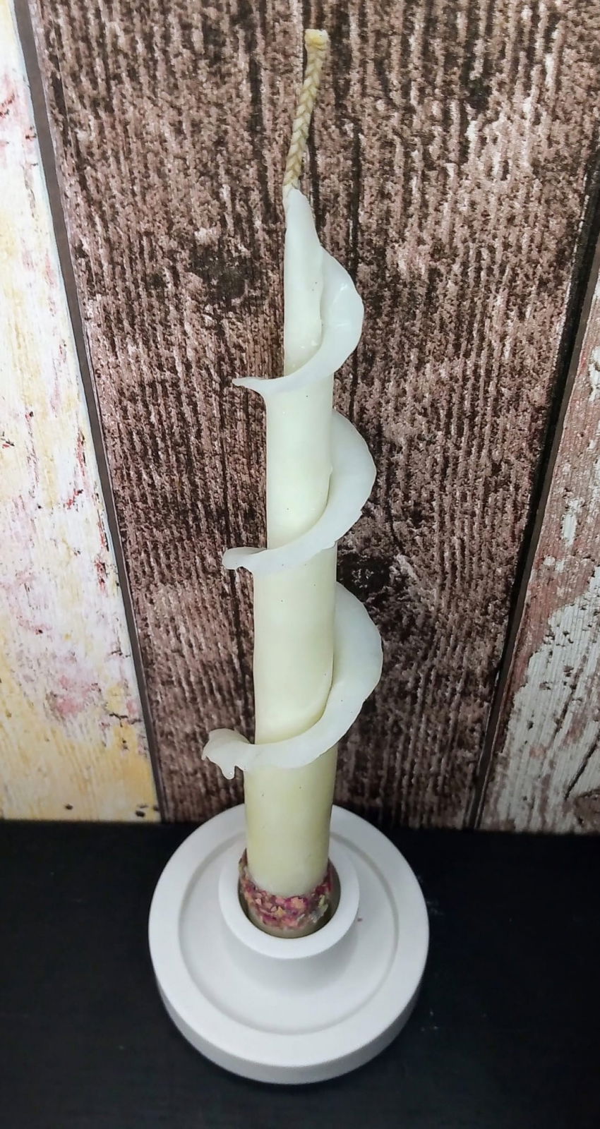 Lumanare decorativa din ceara naturala de albine + suport rotund din ceramica handmade