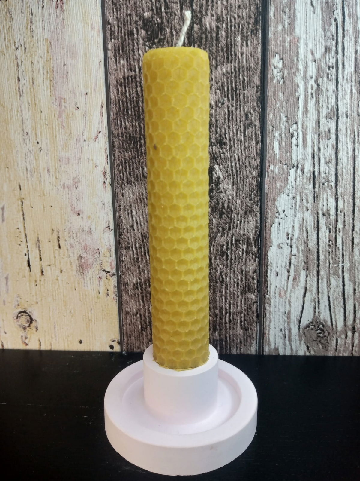 Lumanare decorativa din ceara naturala de albine + suport rotund din ceramica handmade