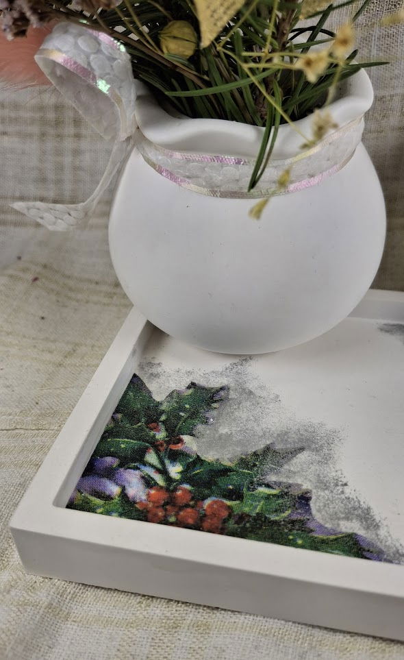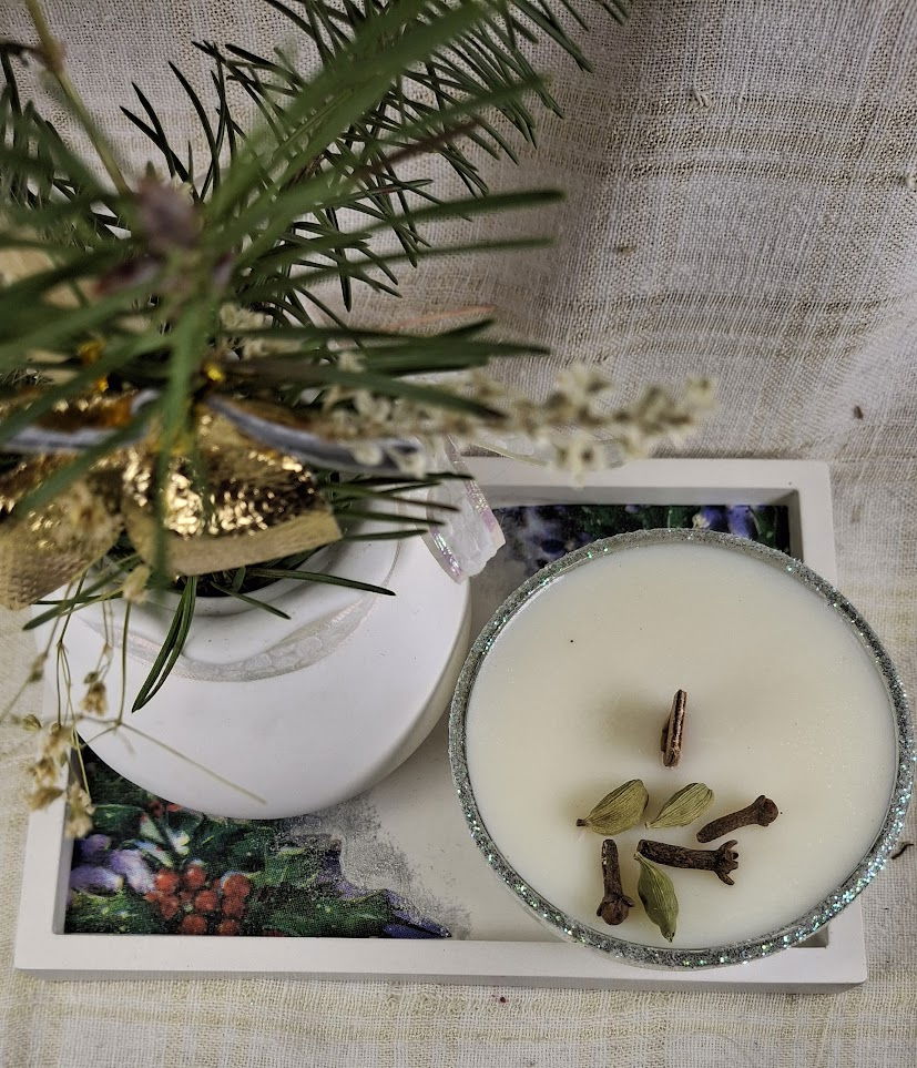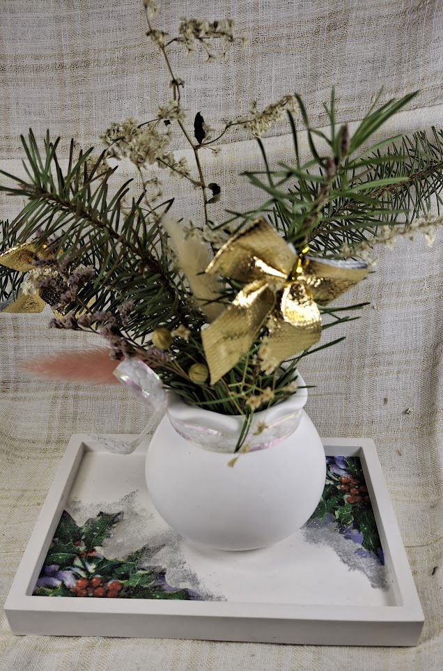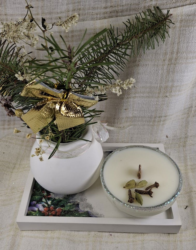 Set decorativ Craciun - lumanare plus suport din ceramica si vas