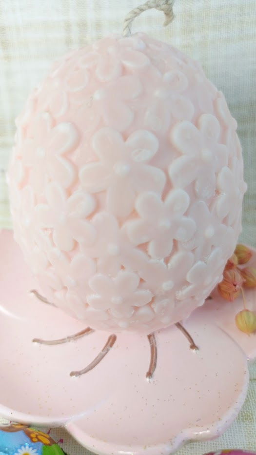 Ou roz cu flori din ceara de soia + farfurie din ceramica handmade roz