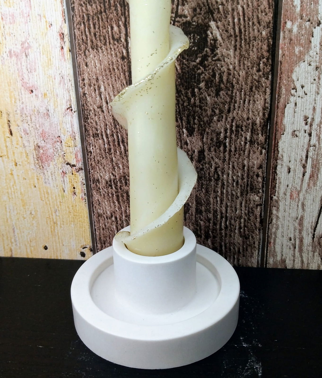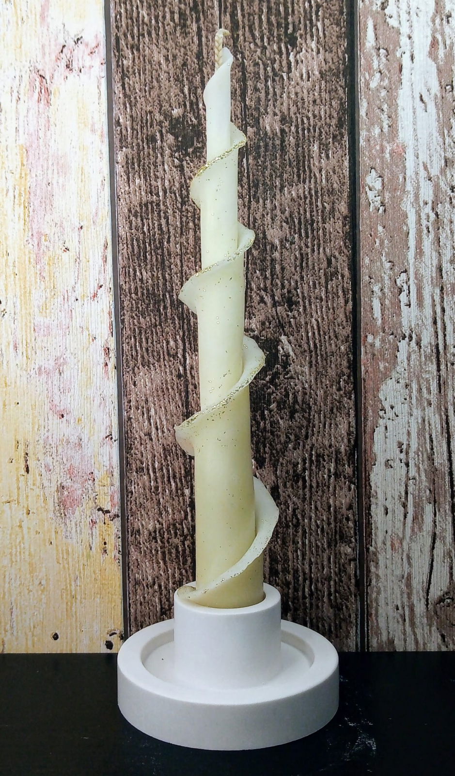 Lumanare decorativa din ceara naturala de albine + suport rotund din ceramica handmade