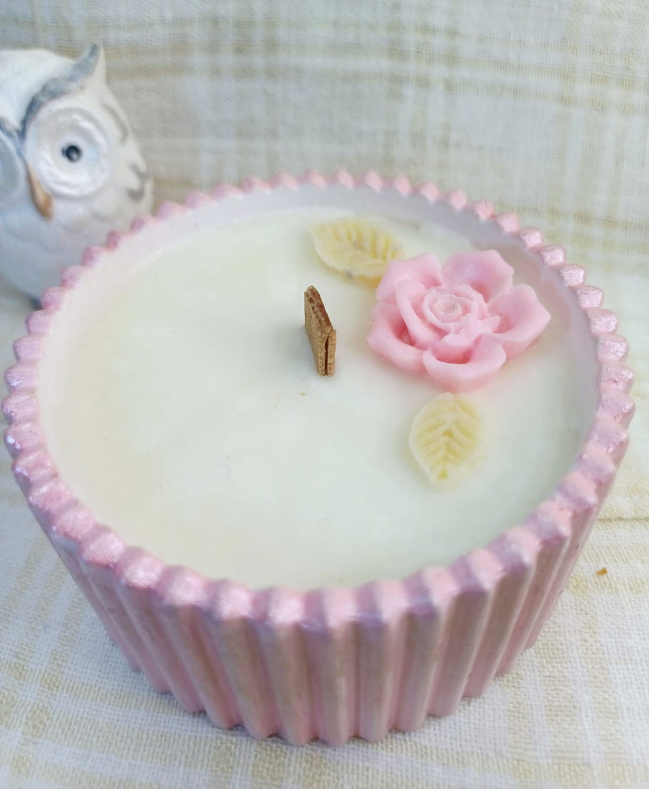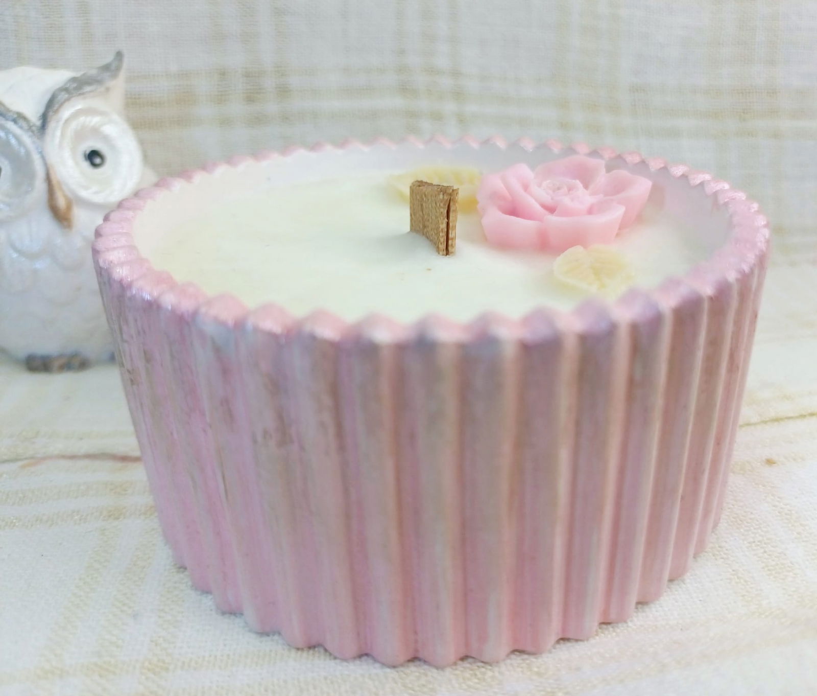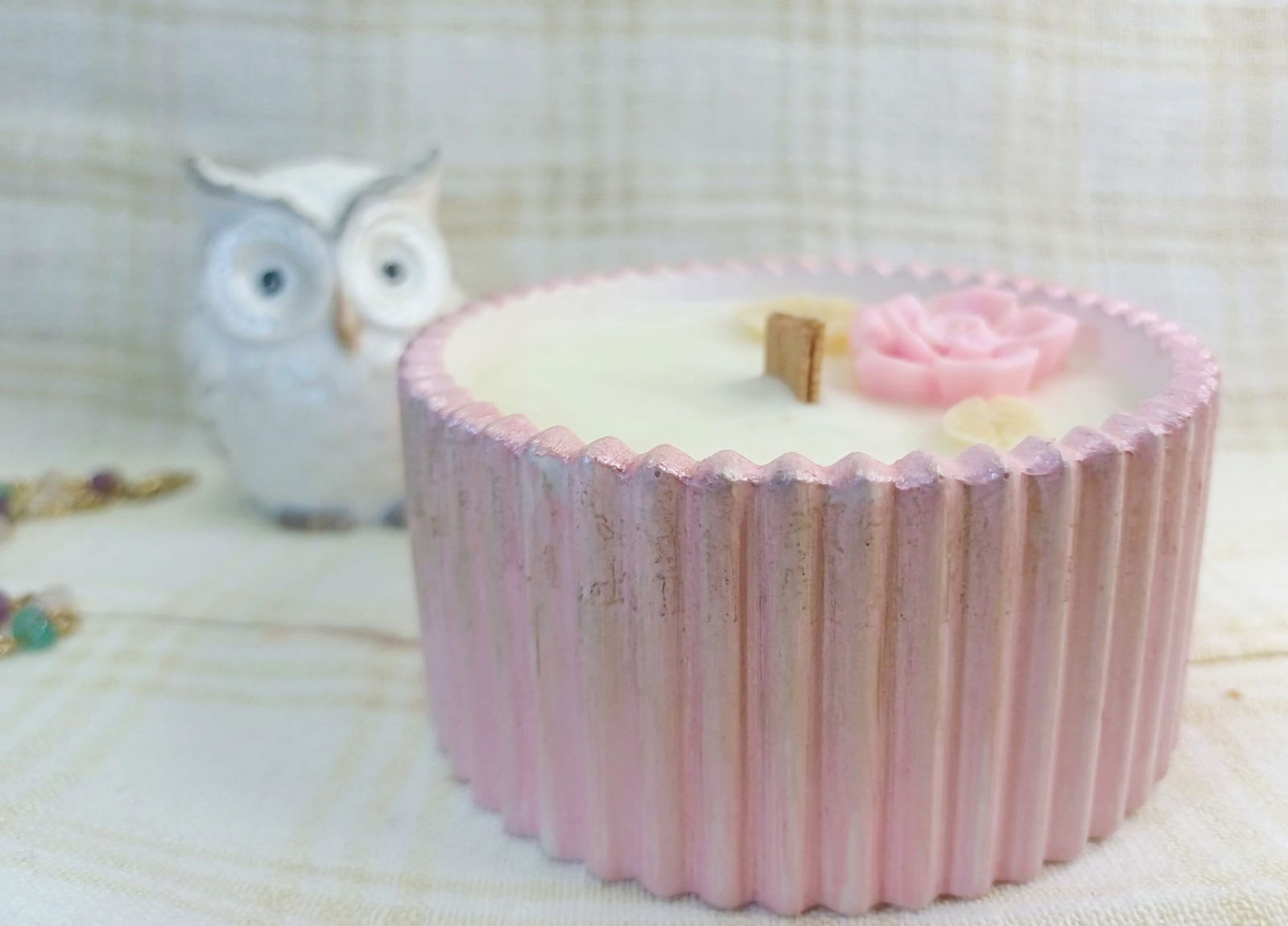 Lumanare din ceara de soia turnata in recipient /bol rotund din ceramica, intr-o nuanta dulce de roz, care emana un farmec delicat si prietenos. Bolul are o formă rotundă, cu linii armonioase și proporții echilibrate. Exteriorul bolului este într-o nuanță de roz dulce, aducand o nota calda si jucausa, interiorul este alb, oferind un contrast plăcut și conferind bolului un aspect luminos.