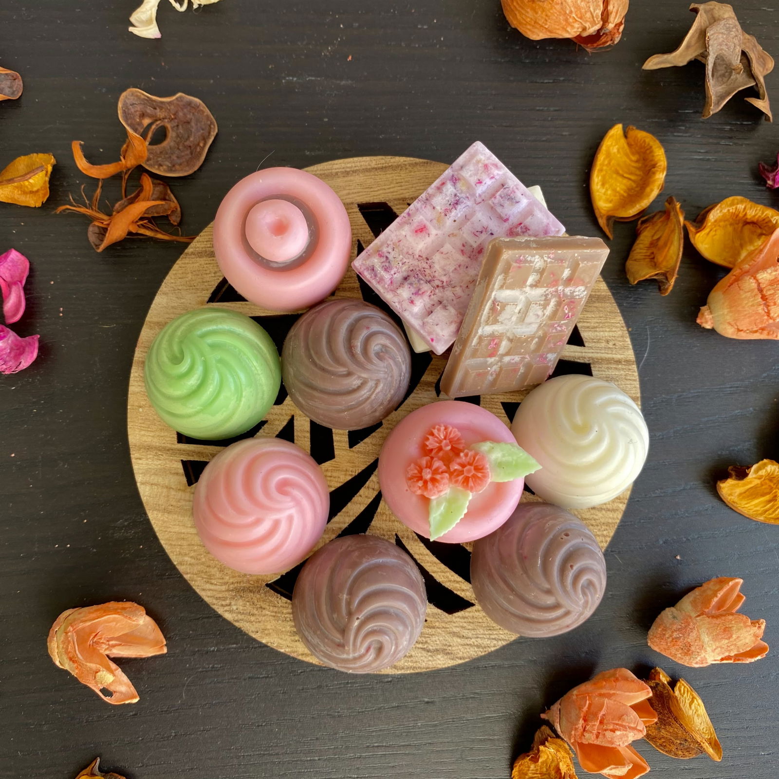 Wax melts - bucatele de ceara parfumate care se topesc in lampa de aromaterapie (vas de ceramica special cu lumanare tip pastila) in locul uleiului esential.
