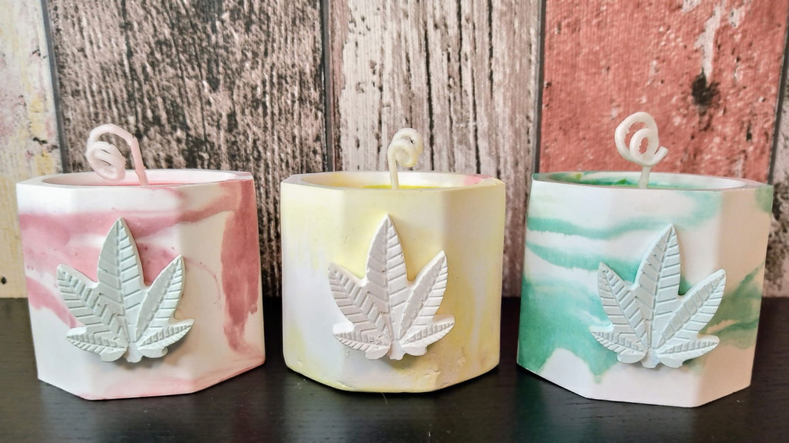 Set 3 lumanari parfumate " Rasta " in suport ceramic mic.