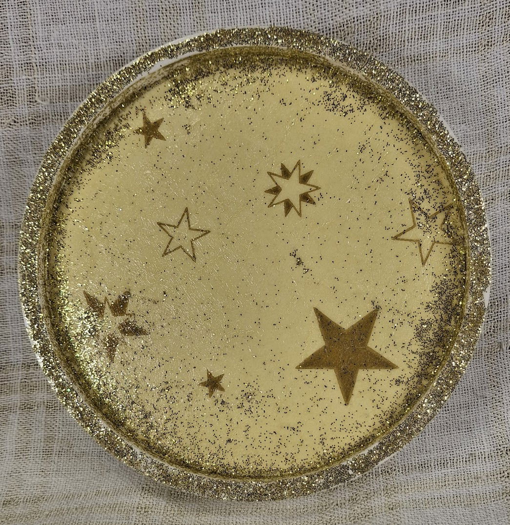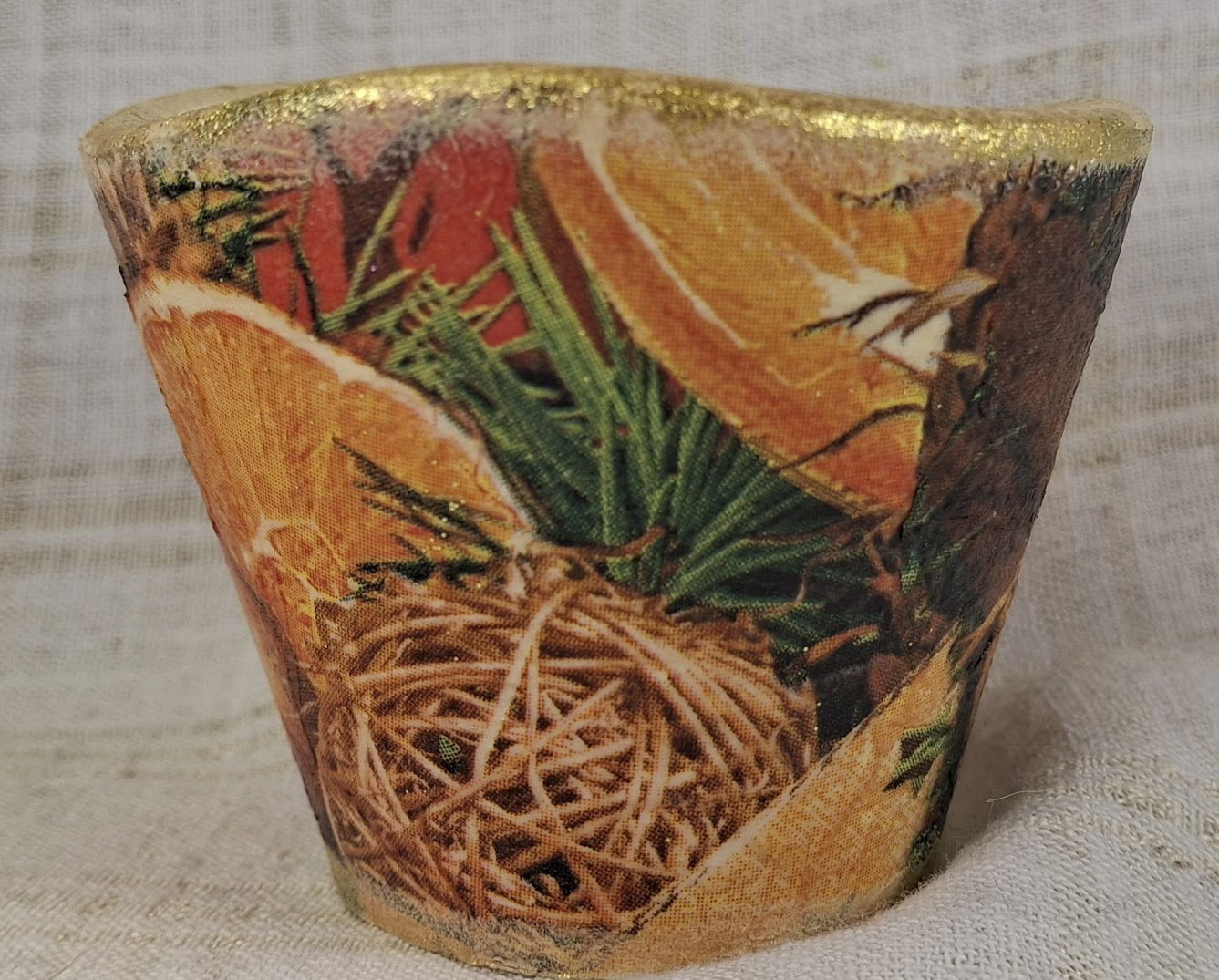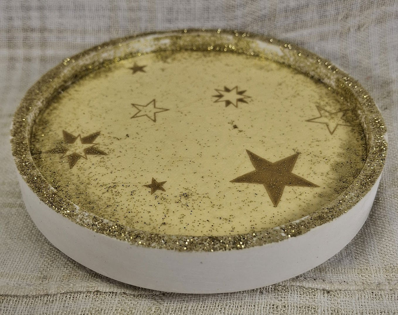 Set decorativ de Craciun - 'Orange Stars' - lumanare plus suport din ceramica pictat manual
