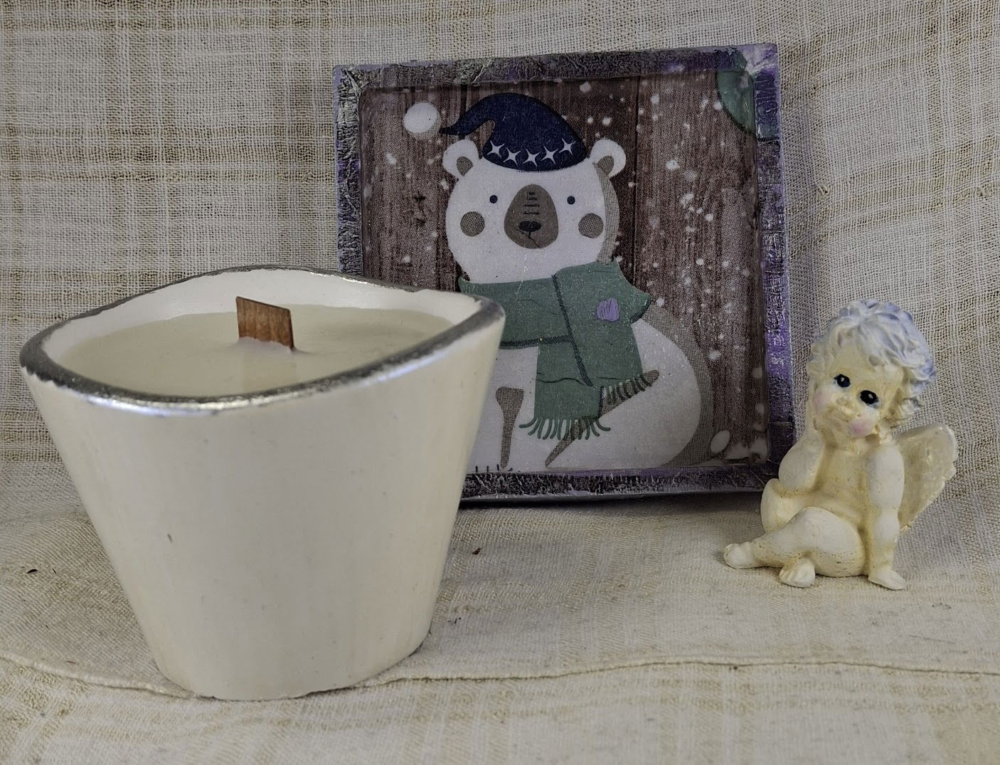 Set decorativ de Craciun - 'Urs Polar' - lumanare plus suport din ceramica pictat manual