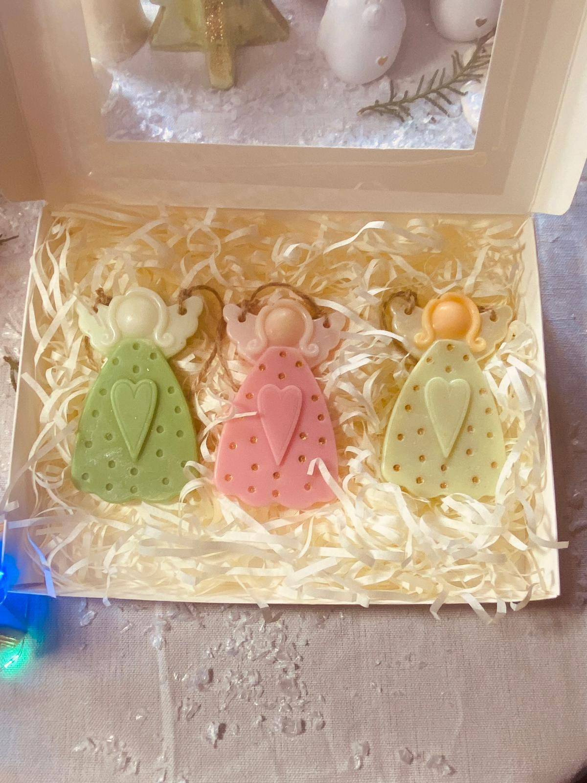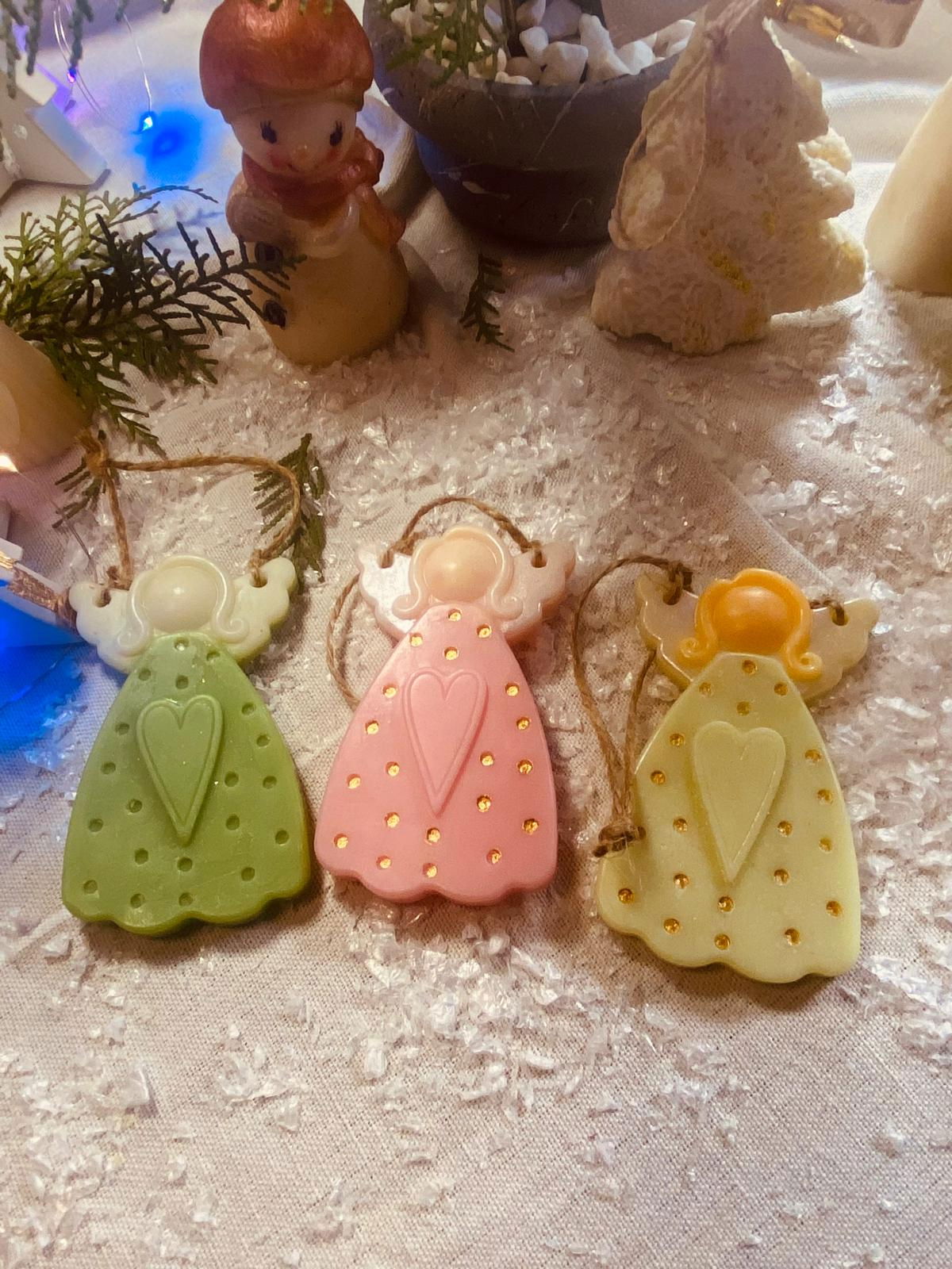 Ingerasi din ceara parfumata, decoratiuni pentru brad. Set 3 ingerasi (model 2)