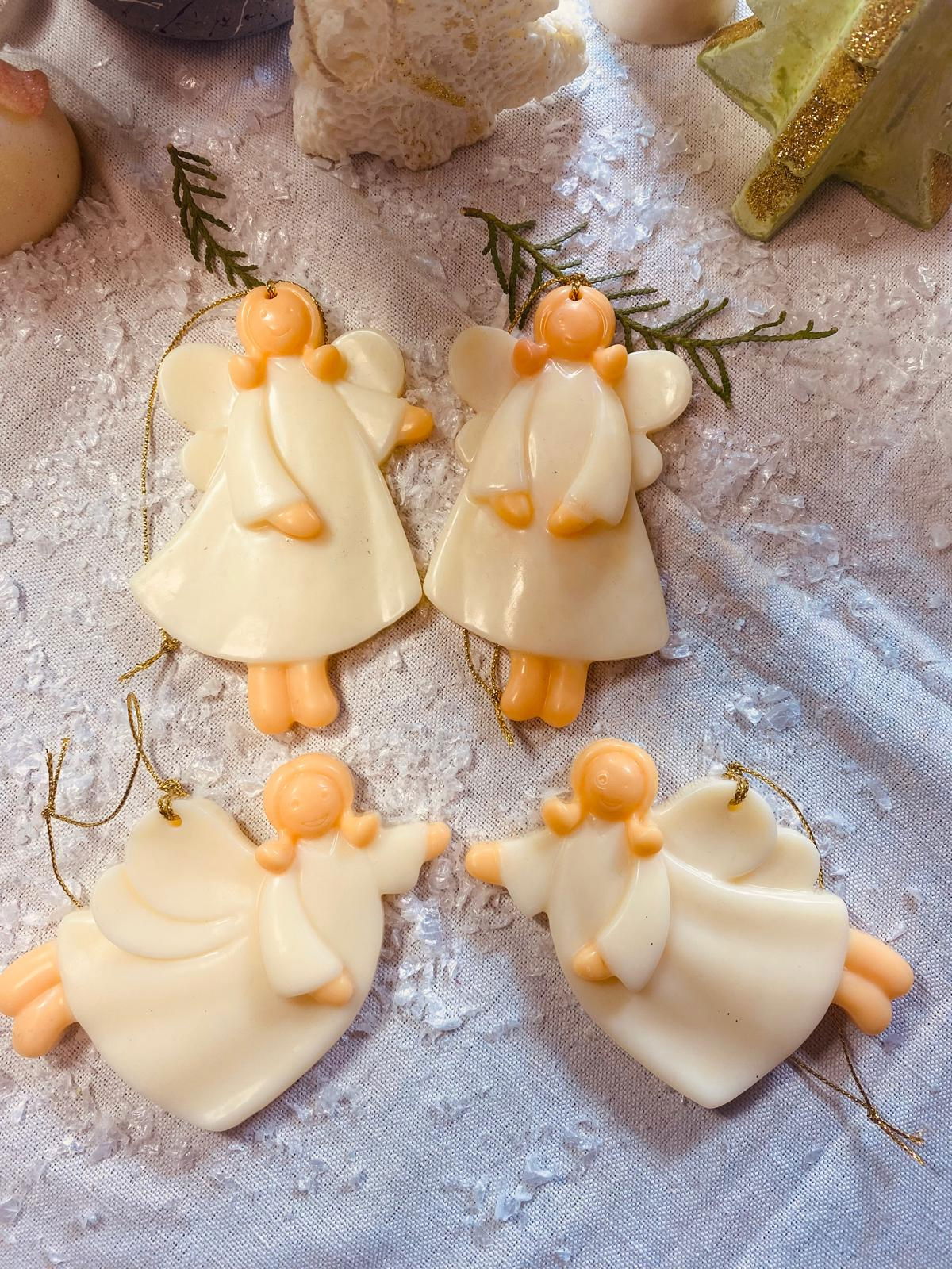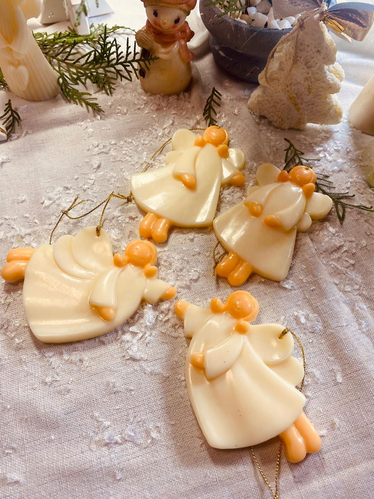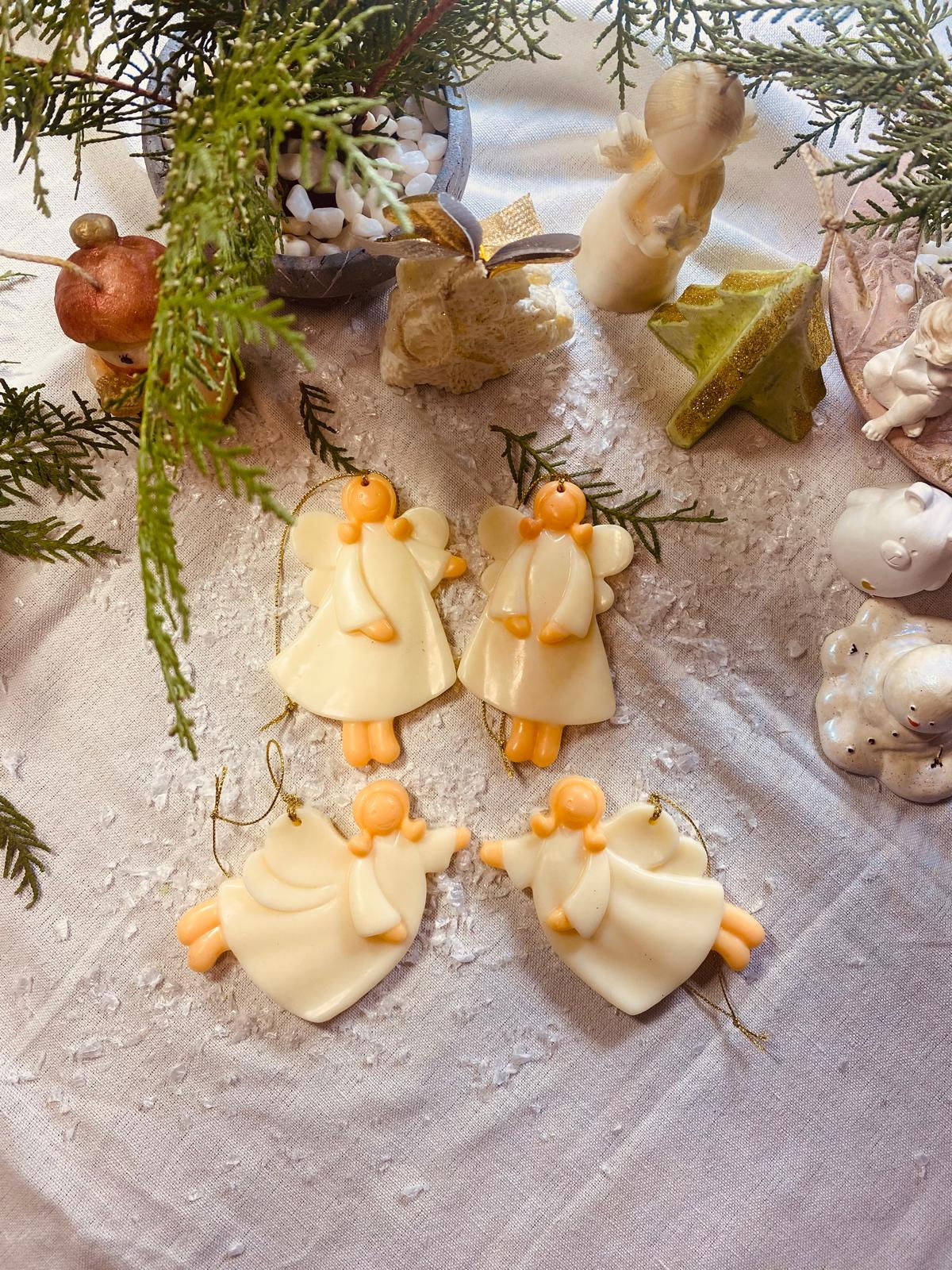 Decoratiuni pentru brad. Set de 4 Ingerasi simpli din ceara parfumata.
